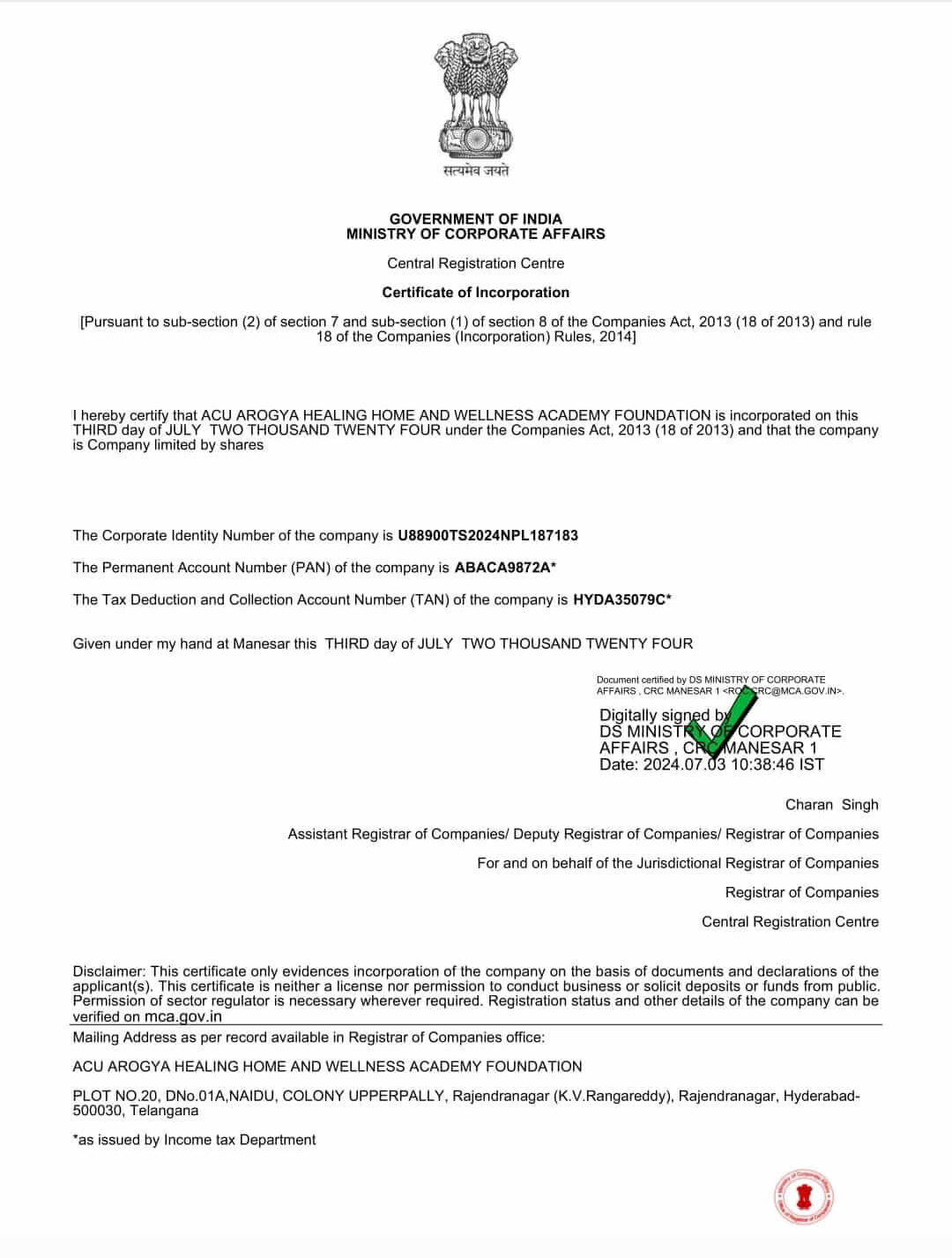 A National Level Autonomous Body Regd. Under The Ministry of Corporate Affairs - NITI AYOG