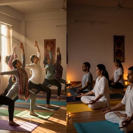 For the Mind: We guide participants through breathing exercises (pranayama) and meditation techniques that calm the nervous system, reduce stress, and improve focus. This practice helps to quiet the constant noise of daily life and promote mental clarity.
