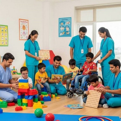 Therapies: Our team provides a range of professional therapies, including occupational, physical, and speech therapy. These sessions are conducted by trained specialists in a nurturing environment. The goal is to help children overcome physical, cognitive, and emotional barriers, building the confidence and abilities they need to thrive.