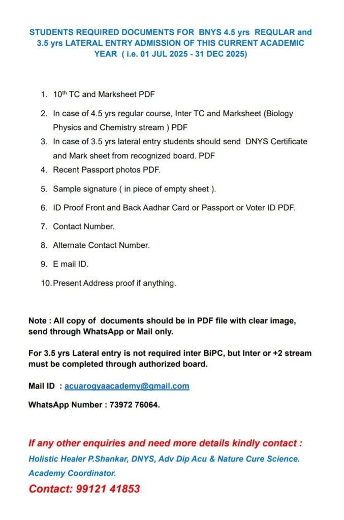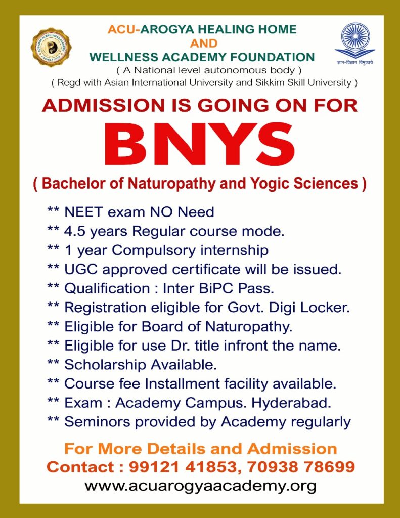 BNYS – Bachelor of Naturopathy and Yogic Sciences