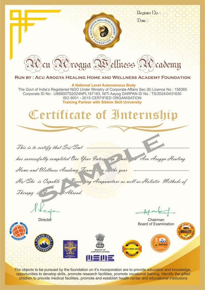 Acu-Arogya Wellness Academy was established to advance the development and education in acupuncture and Naturopathy, and to safeguard and further foster its proficient standing and combination into current medical services practice. We run Professional, Diploma, Advanced level and Cosmetic training in Acupuncture, Naturopathy and Diet therapy courses.